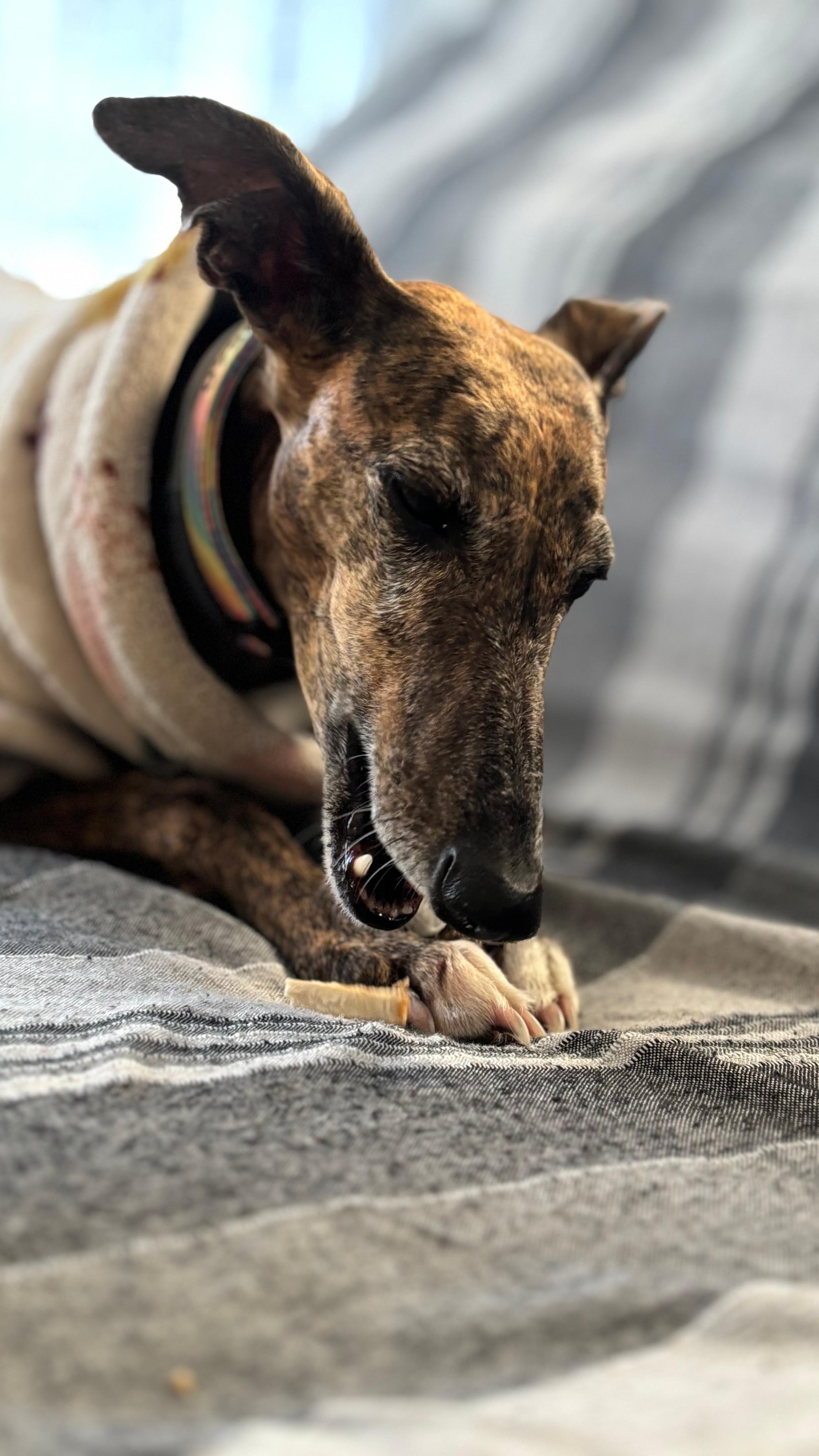 «Alba hace 2 años aprox. que pasea diariamente a nuestra galguita. Gala tiene mucho miedo a las personas y Alba la ha acompañado en su proceso de adaptación con mucha paciencia, respeto y amor.